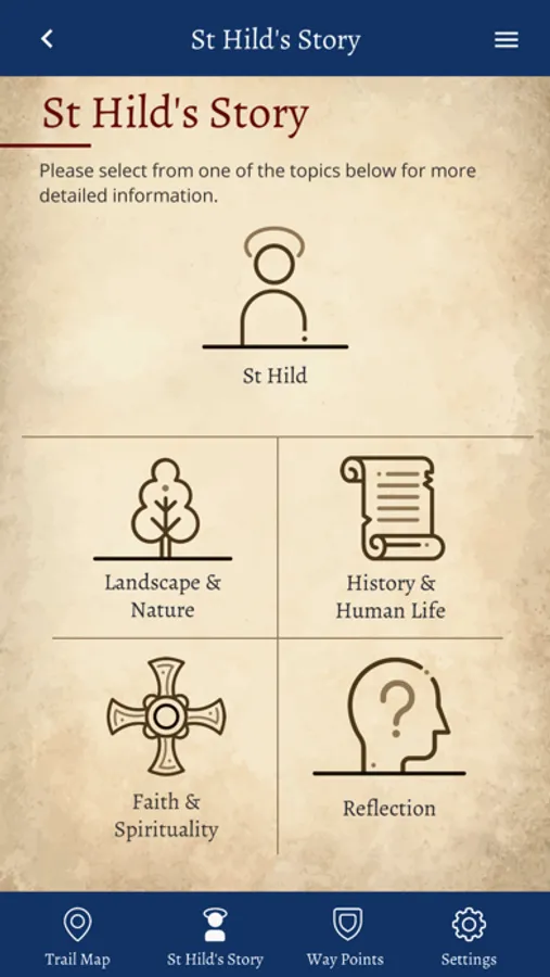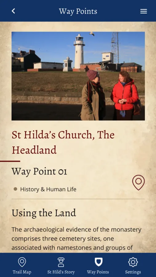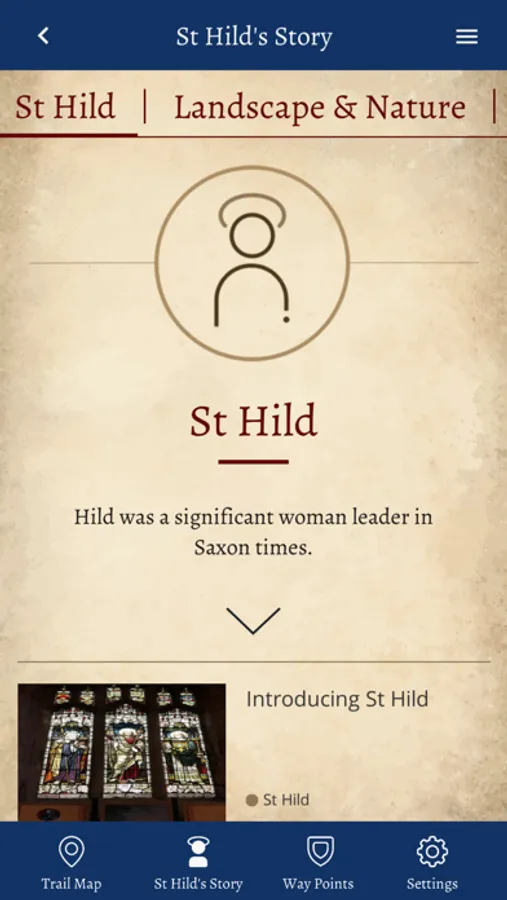 The Way of St Hild is an exciting pilgrimage trail linking Hartlepool with Whitby. This app features information, photographs and videos about the route and the surrounding area which can be unlocked through interacting with augmented reality markers and GPS locations. However, users can chose to unlock all the content by default at the start of the app if they are unable to walk the route.