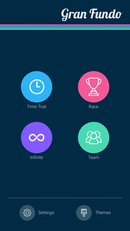 A simple, addictive and fun cycling game for when you're not riding. Spend your nights or rainy days dreaming of the next big ride. Gran Fundo has three modes available to provide endless game-play options: Time Trial, Race and Infinite Mode.