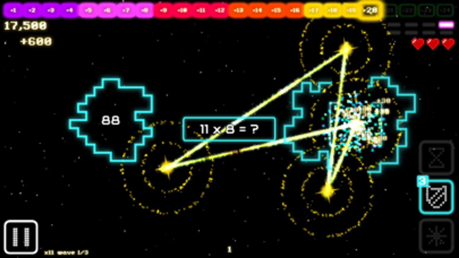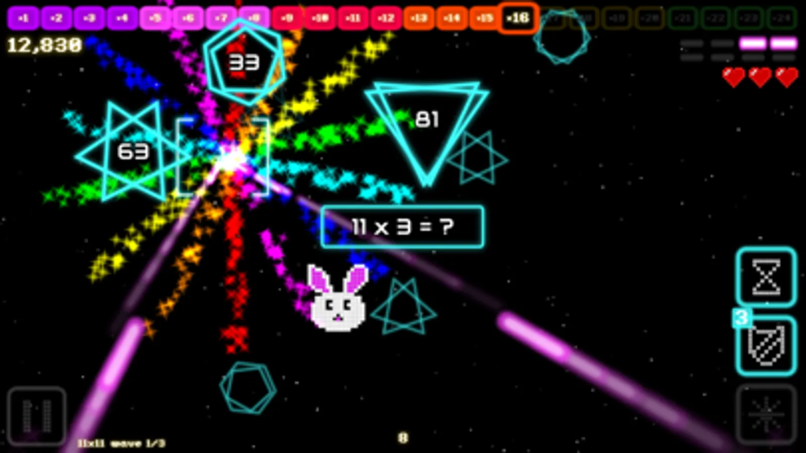 Space Pig Math: School Edition is an action game for practicing your times tables - up to 12x12 - with satisfying, visceral feedback and retro-inspired visuals and sounds.