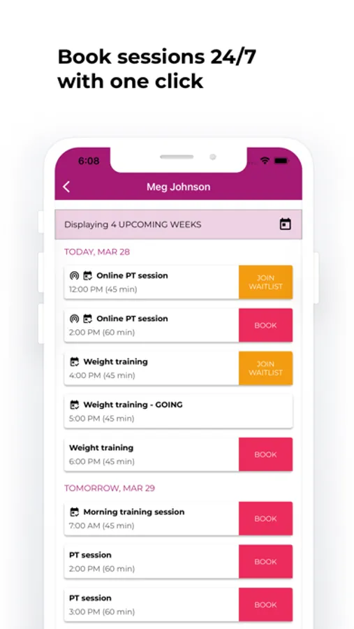 You can book any class 24/7, or cancel your attendance without the trainer's assistance.