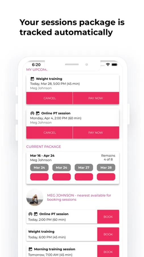 With the FitGen app, you can book classes of your personal trainer, as well as any other trainer available in the app.