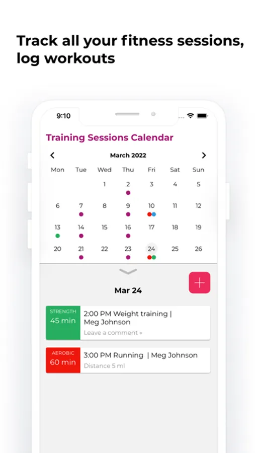 In the Training Sessions Calendar, browse your sessions history on a handy calendar view, log workouts, add notes, track exercise types (aerobic / strength / flexibility / balance).