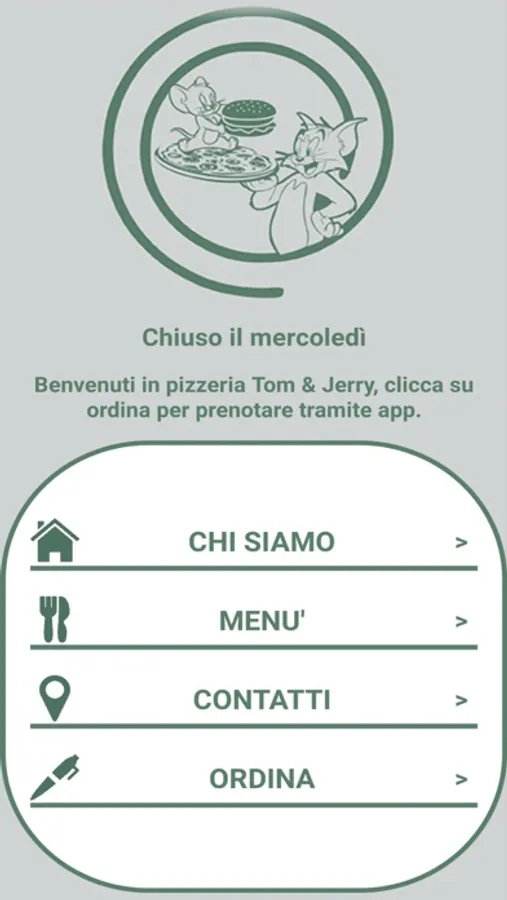 Con l'app "Pizzeria Tom & Jerry" potrai prenotare pizze, panini e bevande e riceverle a casa tua! La pizzeria Tom & Jerry si trova a Vittoria (RG).
