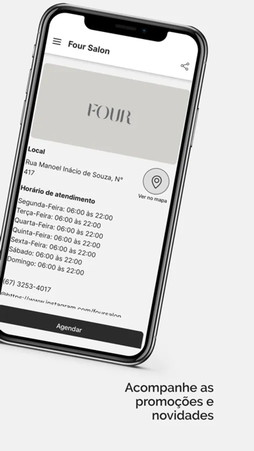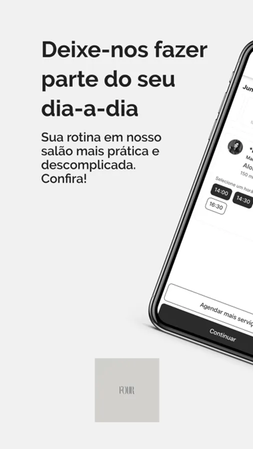 Agende seu atendimento no Four Salon de forma simples e intuitiva, com apenas alguns cliques.