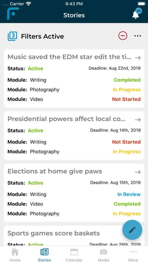 FLOW helps you track each story element through its workflow, from the moment it’s assigned to the moment it’s published. At a glance, editors and advisers can view the status and progress of every article, photo, and video, and FLOW gives them an easy way to communicate with their staff.