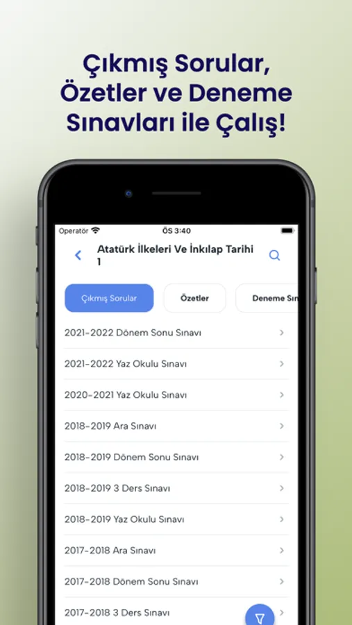 Açıköğretim Fakültesi’nden aldığınız tüm derslere ait önceki dönemlerde çıkmış sınav sorularına uygulamamızdan ulaşabilirsiniz.