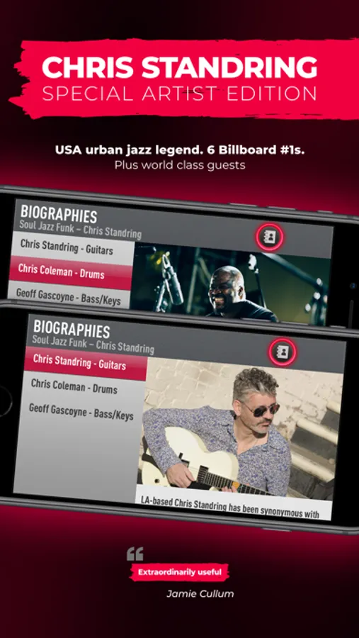 Chris Standring is one of America’s most prolific urban jazz artists. With 6 Billboard #1s and 13 solo albums to his name, the legendary guitarist is joined by one of the world’s most renowned drummers Chris Coleman (Babyface, Prince, Chaka Kahn, Christina Aguilera…) and top UK bassist and producer Geoff Gascoyne (Sting, Van Morrison, Georgie Fame…) to bring you this special artist edition of the app.
