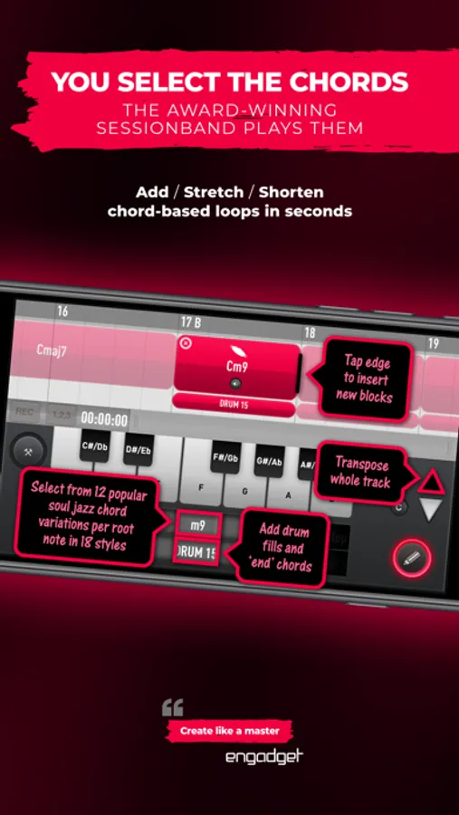 Create studio-quality Soul, Jazz and Funk tracks to your own chords in minutes with this special artist edition of the award-winning SessionBand app - the world’s only chord-based loop app.