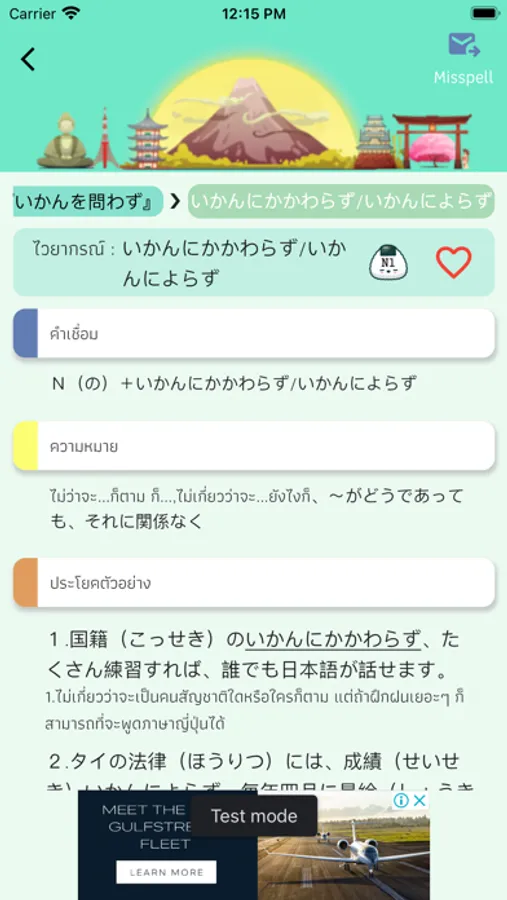 • ไวยากรณ์มากกว่า 1,500 ตัว (โดยแยกระดับ N1,N2,N3,N4,N5)