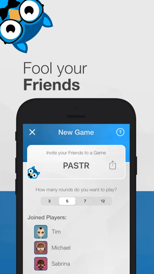 Can you pick the right answer from the deceiving answers of your friends? Get points for guessing the right answer - bonus points for each player you manage to trick into choosing your answer!