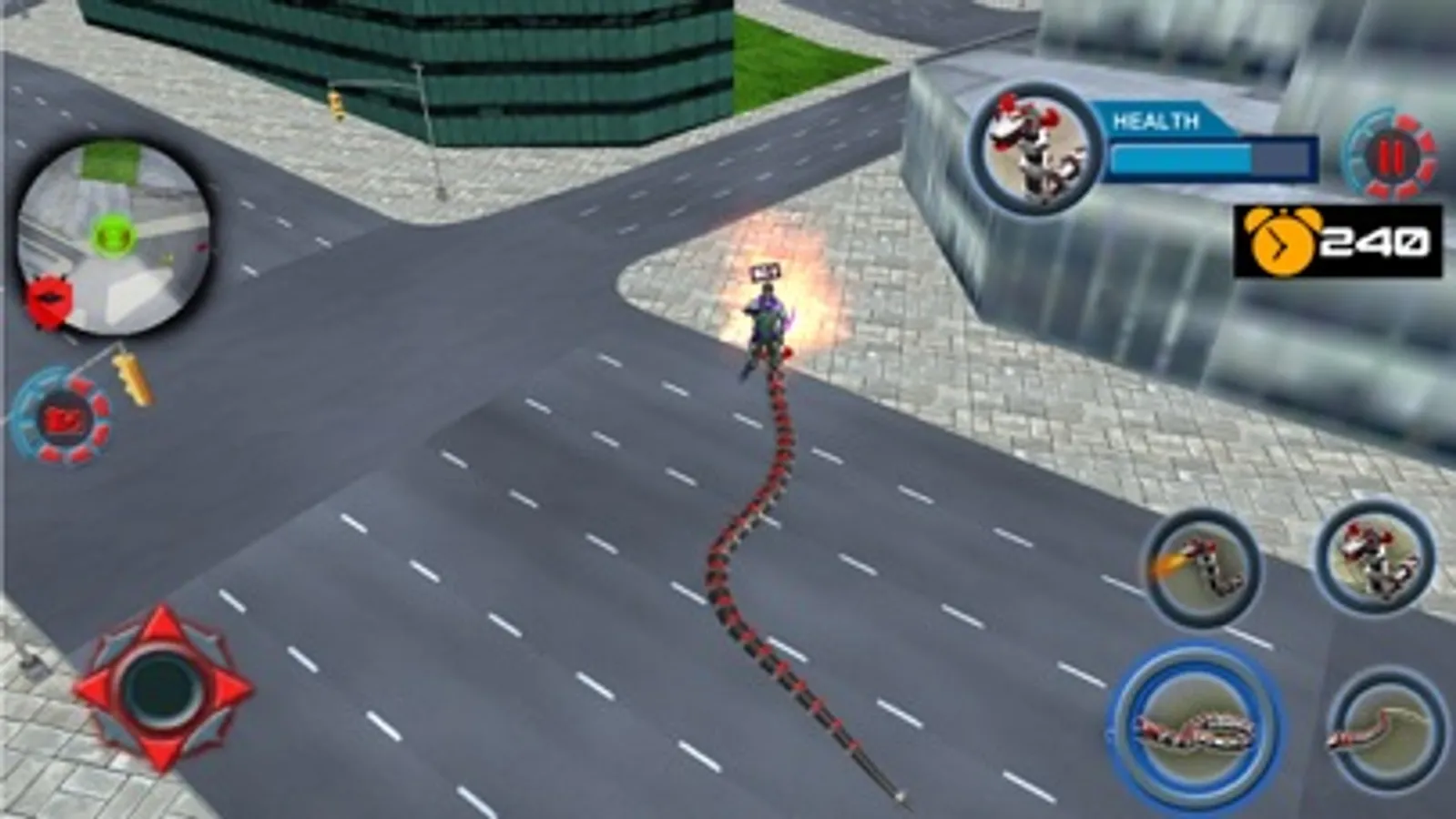 Transform into the giant angry anaconda snake robot and clear up the city from everything that a war brings with it. Win the city battles by getting rid of enemy robots one by one. Also when you hunt the enemy robots, keep an eye on your health. Also this giant anaconda snake robot is powerful and has the wildcraft of hunting and executing, it can only do so much.