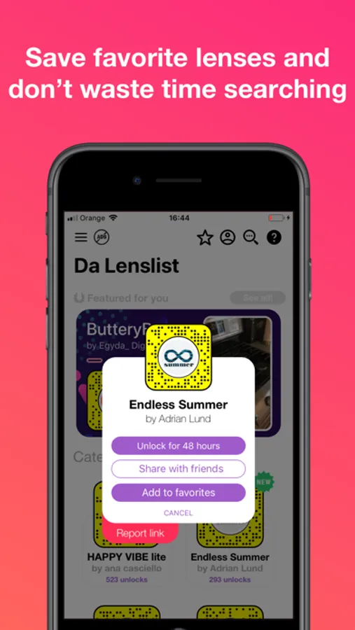 With this app, you will never be missing out on the latest and newer lenses. Snap a pic with your favorite lens! Or create a meme on the spot! Da Lenslist is a must have for every meme-master.