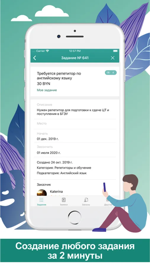Создать задание можно за 1-2 минуты, а уже через несколько мгновений вам придут заявки от потенциальных исполнителей, после чего можно будет выбрать подходящую кандидатуру по цене, рейтингу и тексту предложения.