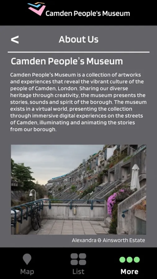 The Camden People's Museum is home to a series of augmented reality artworks that celebrate the stories, people and heritage of one of London's most iconic boroughs. It challenges preconceptions of what a museum is - the Camden People's Museum has no walls and exists in the world around you - and is a digital companion to Camden Alive, the arts programme that commissions artists to work with residents across the borough.