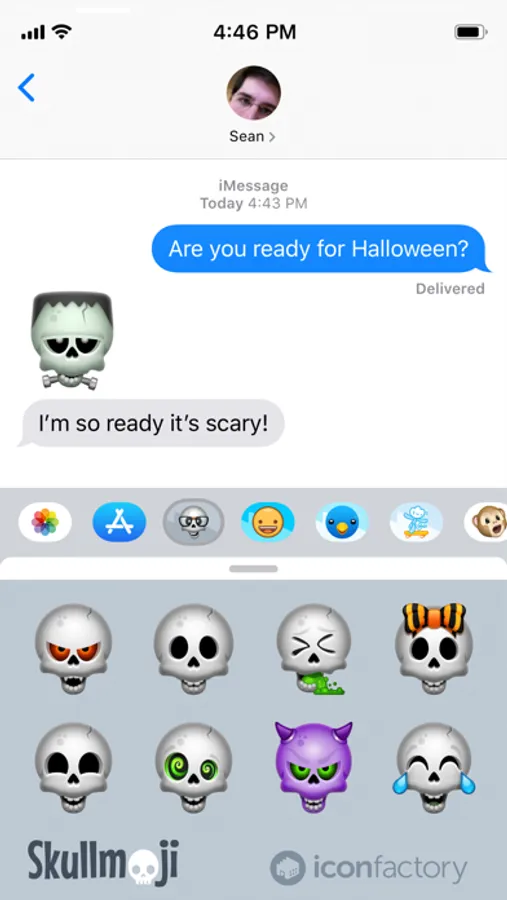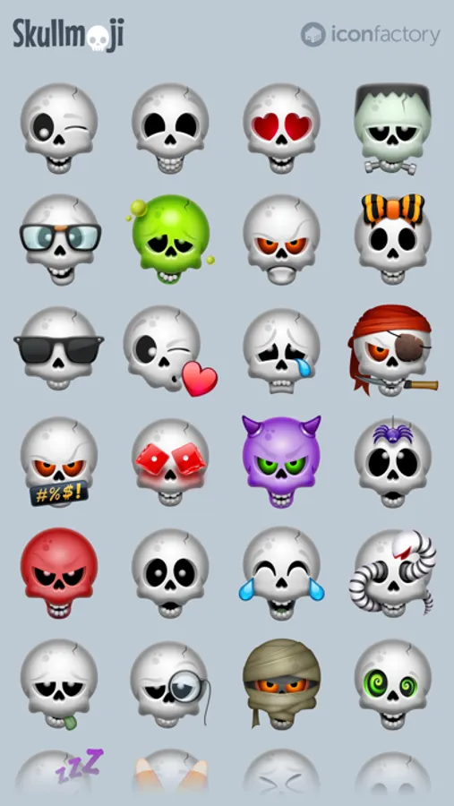 A fun-filled set of spooky skull Emoji perfect for Halloween or any time.
