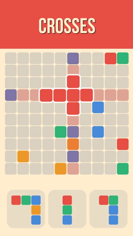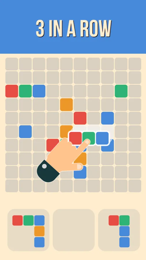 A relaxing game which requires thinking and strategy to succeed. Drag & Drop color pieces to the board so they group to disappear. 3 same colors in a row will be destroyed. 4 in a row will destroy the whole row. And finally you can form crosses to destroy both the row and column. How many tiles can you destroy?