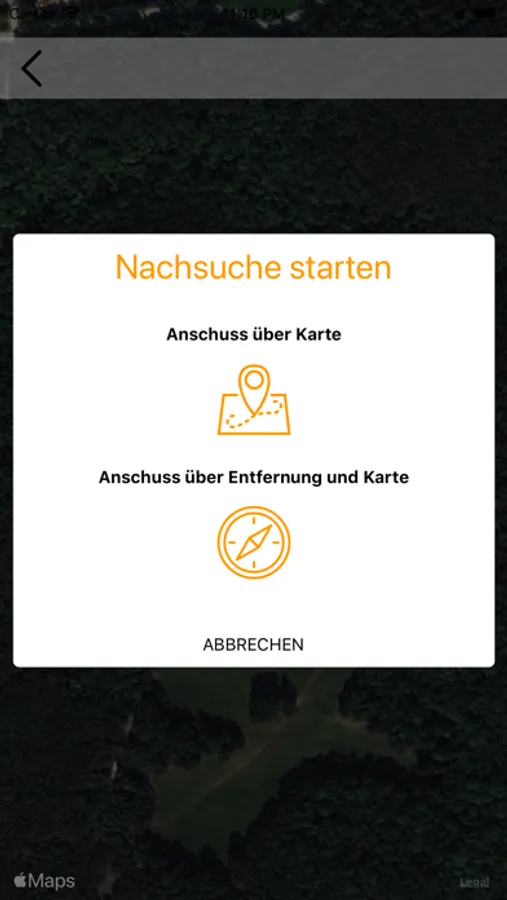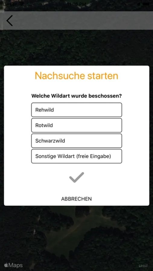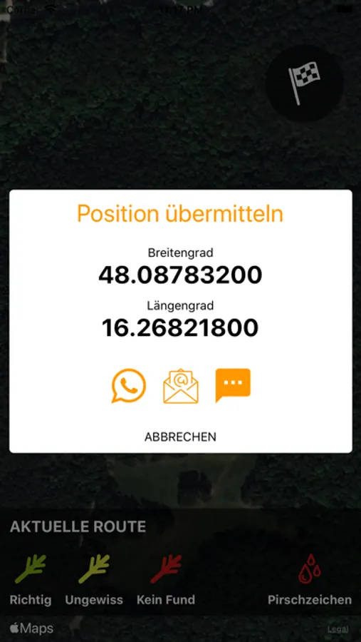 Alternativ können Sie auch ganz einfach die Route Ihres Pirschganges tracken, oder ihren Standort, bei zum Beispiel Notfällen, direkt aus der App teilen.