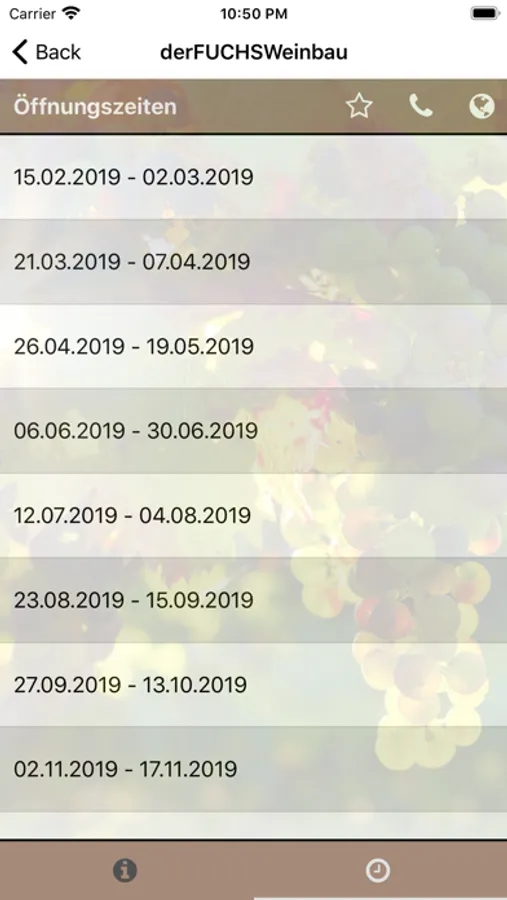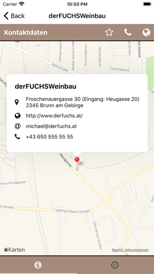 Über die Kontaktfunktionen (E-Mail und Telefonnummer) können Sie direkt aus der App Kontakt mit dem Heurigen aufnehmen.