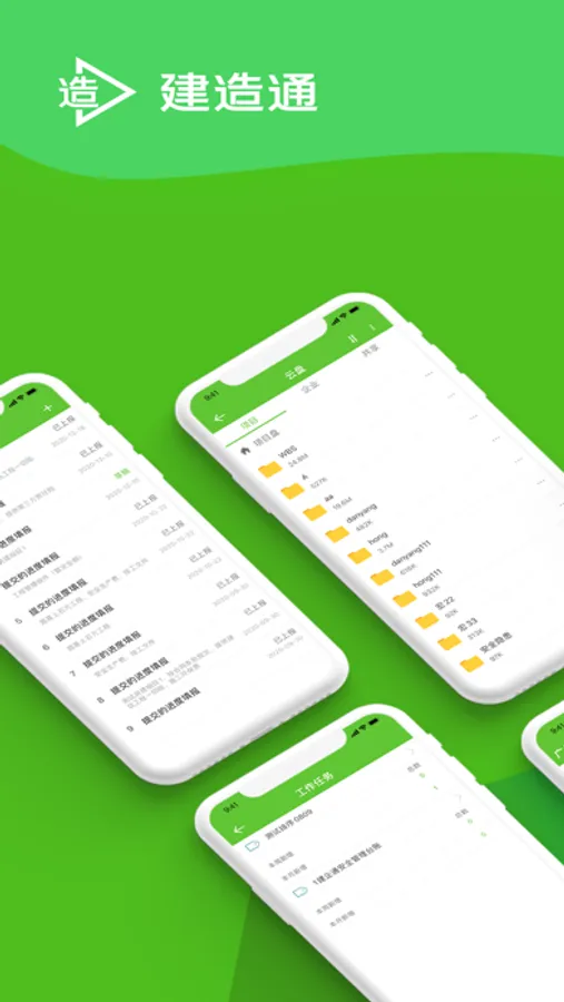 建造通APP主要为建筑工程提供生产调配、移动办公和项目管理信息化服务,实现施工现场信息高效传递和实时共享。主要功能包括质量巡检、安全隐患、工序报检、项目云盘、施工相册、视频监控、进度管理、生产调配、劳务人员实名管理等