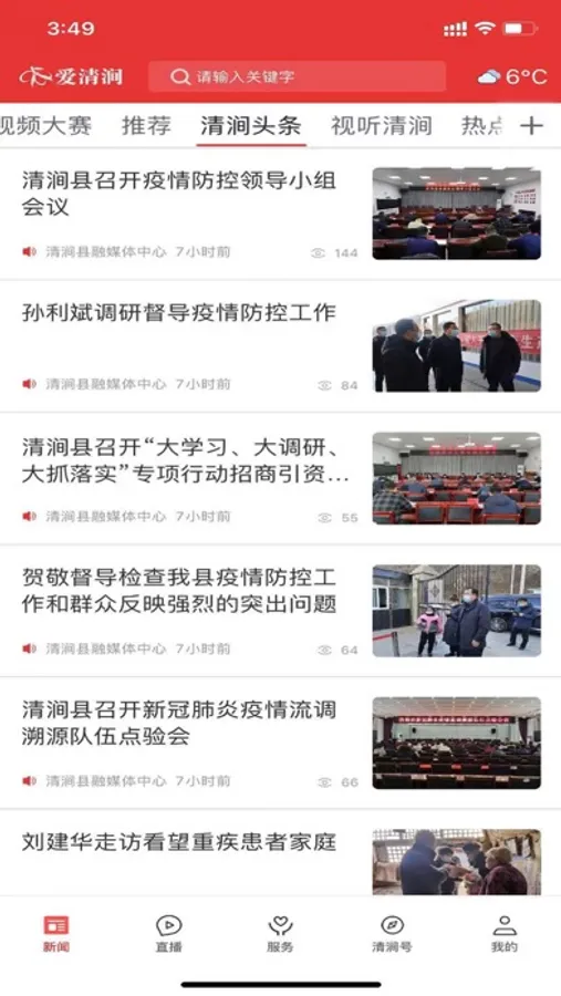“爱清涧”手机APP作为清涧融媒体中心主办的“新闻+政务+服务”综合平台,是权威的舆论宣传主阵地。开设了新闻、直播、电视、服务、“清涧号”等栏目,整合了县域内网站、微信、微博、短视频等自媒体和部门、镇(办)、社区、村组政务服务资源。用户可通过客户端,第一时间了解清涧政治、经济、民生、服务等方面的最新动态,同时提供各种便民服务,还可参与实时互动,实现“一端在手,尽享智慧”。