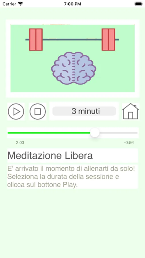 La terza sezione dell'App ti aiuterà a meditare in modo autonomo, avrai la possibilità di selezionare a tuo piacimento la durata della sessione.
