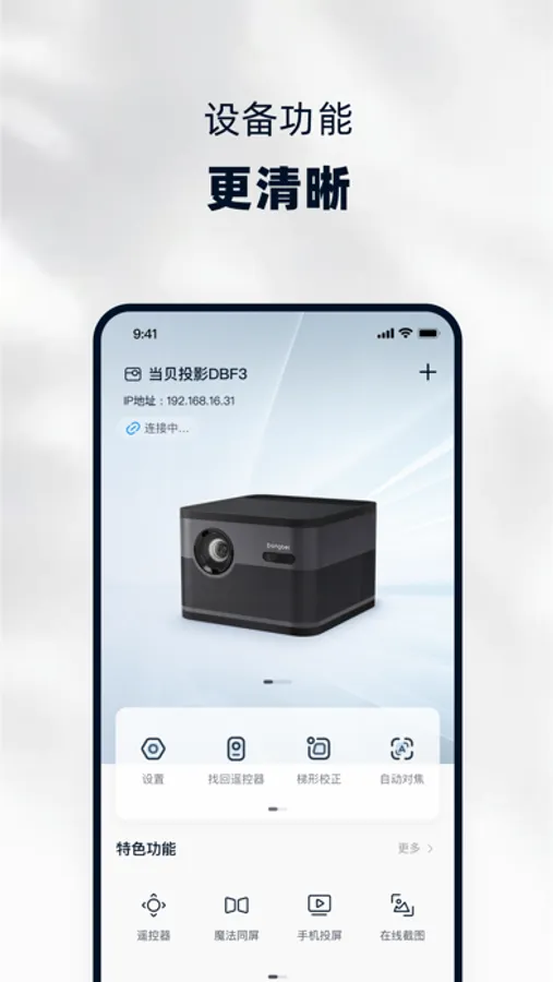 系统功能:找回遥控,设置,自动对焦,梯形校正等通通支持。