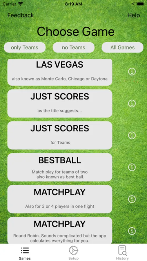 We also don't always play a counting game, but always choose exciting variations for a round of golf.