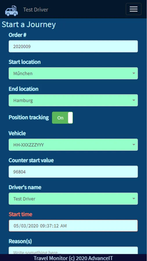 Travel Monitor is a compact, simple and easy to use mobile application that allows you to quickly register, track and manage your business or private journeys, with the ability to upload the data to the web service for optional later on line handling.
