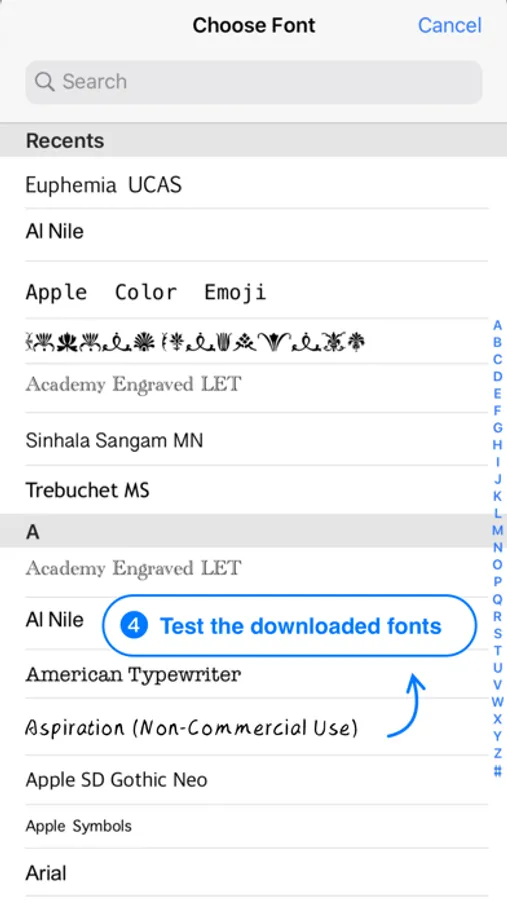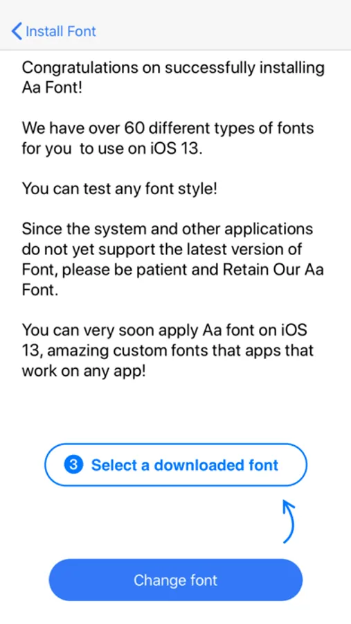 iOS 13 currently already has fonts installed, but it is not supported by other applications and systems. Please keep our Aa Font installed and check the Apple Store for updates. This feature will be available soon.