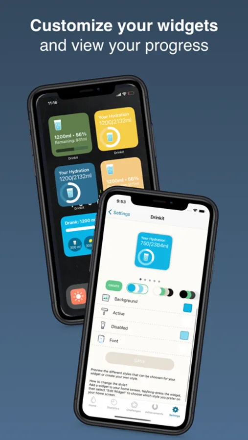 In the widget, you can also log your own created drinks and have an overview of your goal and the water you have already drunk.