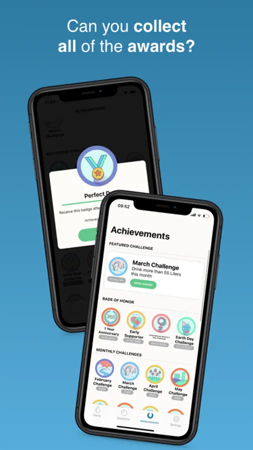 You can earn different awards and compare them with your friends. Log your water every day and start collection awards today!
