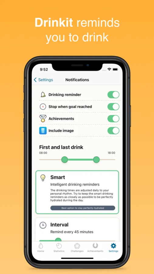 Define the interval when you want to get notified. You can even decide if you don’t want to get notified anymore after you reached your daily goal.