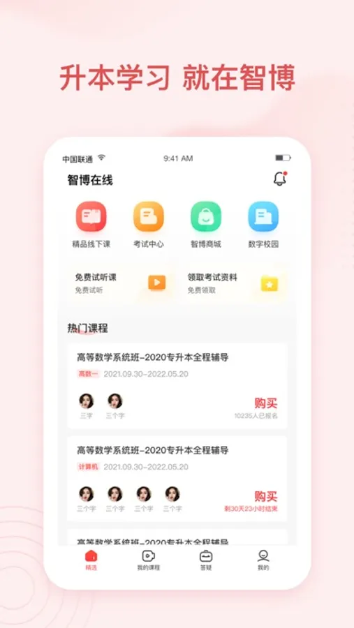 智博在线是专为山东专升本的学生打造的专业备考APP,集专升本名师直播课程、视频课程、升本资讯、图书教材、名师答疑、升本题库、历年真题、在线模考、每日一练等功能,旨在帮助还未升本的在校大学生实现升本梦。每日一练,不断提升自己!定期推送升本信息,时时掌控升本动态。出题名师讲解,考点难点一网打尽,专升本考试通关必备!