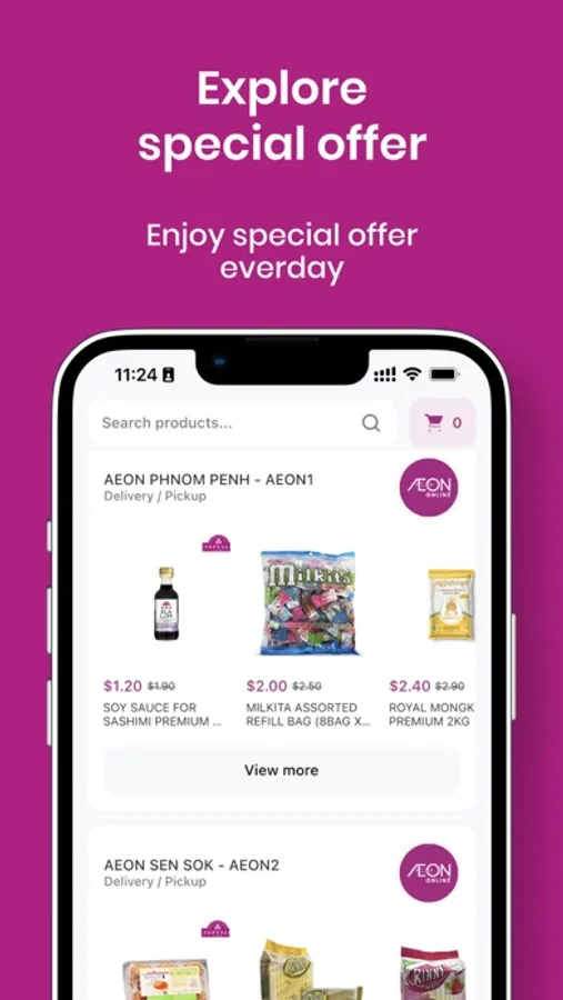 1. Same price with Aeon Phnom Penh Store "AEON 1" no Mark-up included free picking service.