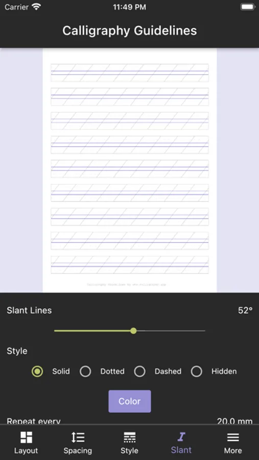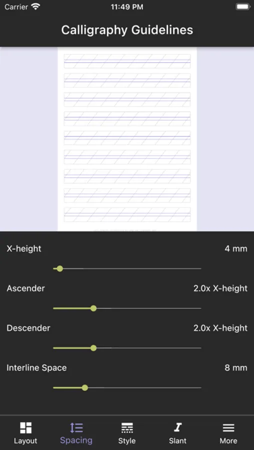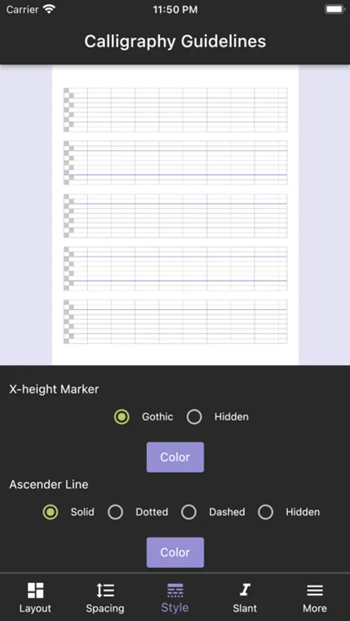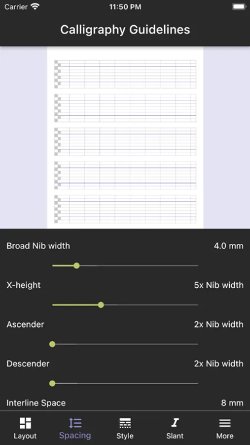 Customize every aspect of calligraphy rulers with the Calligraphy Guidelines app: