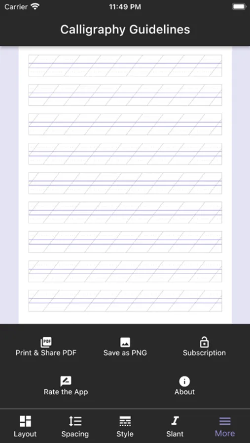 • Calligraphy Guidelines app requires a subscription to export and print PDF files, or export high-res PNG files.