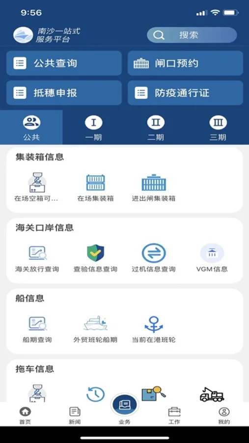 业务查询模块将各种查询信息整合到APP平台,通过优化查询路径和资源配置,为外部客户提供更加强大、便捷的实时查询功能,覆盖对外服务的每个方面。业务受理功能实现手机端、电脑端双向同步,随时随地都可以用手机办公,不再受环境条件限制。针对内部客户,实现港口大数据平台移动端展示,令码头生产的管理、监控更及时、有效。