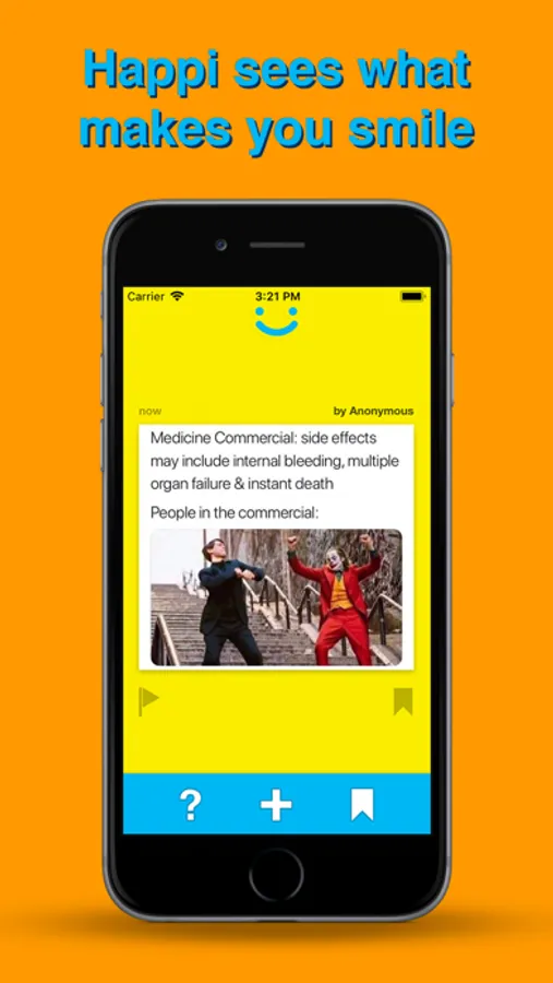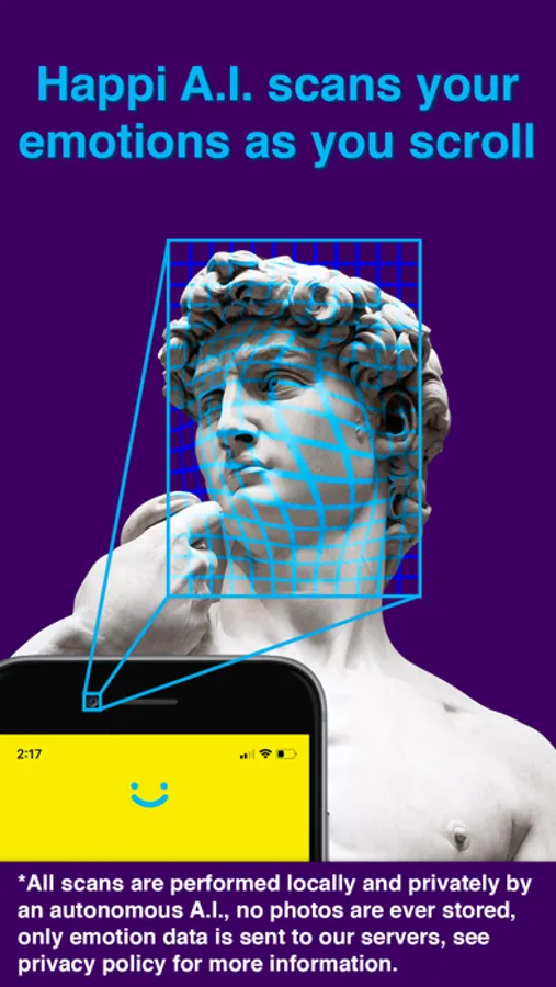 Disclaimer: Happi works by using an autonomous A.I., that runs locally and privately, which scans emotional response via your device's front facing camera. No photos are ever stored, only emotional response data is sent to our servers. For more information please refer to our privacy policy.