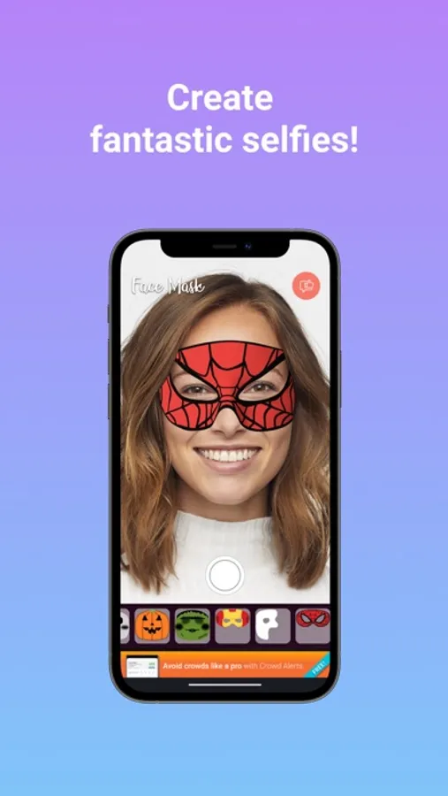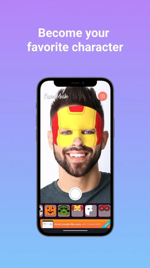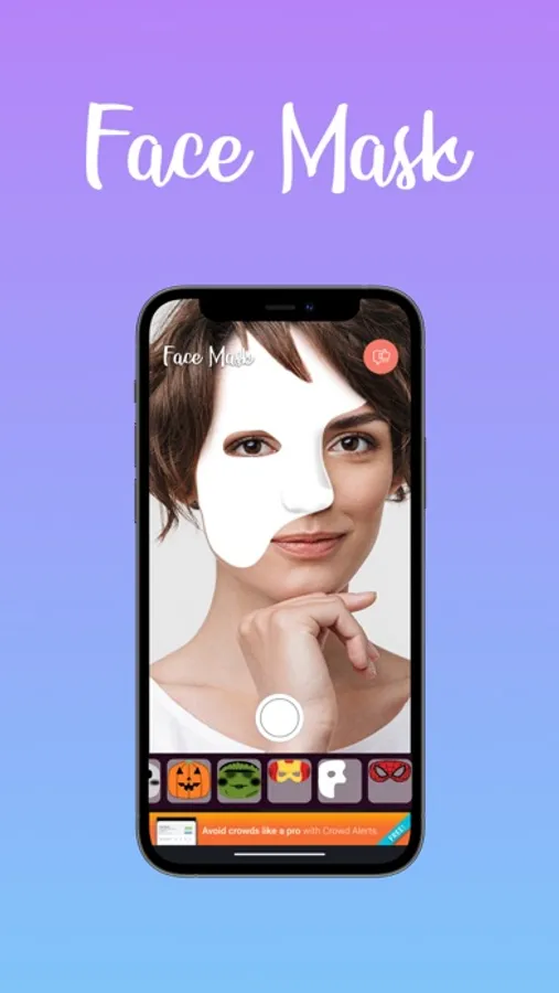 Face Mask allows you to change your look just by selecting any image file, and putting it on top of your face.
