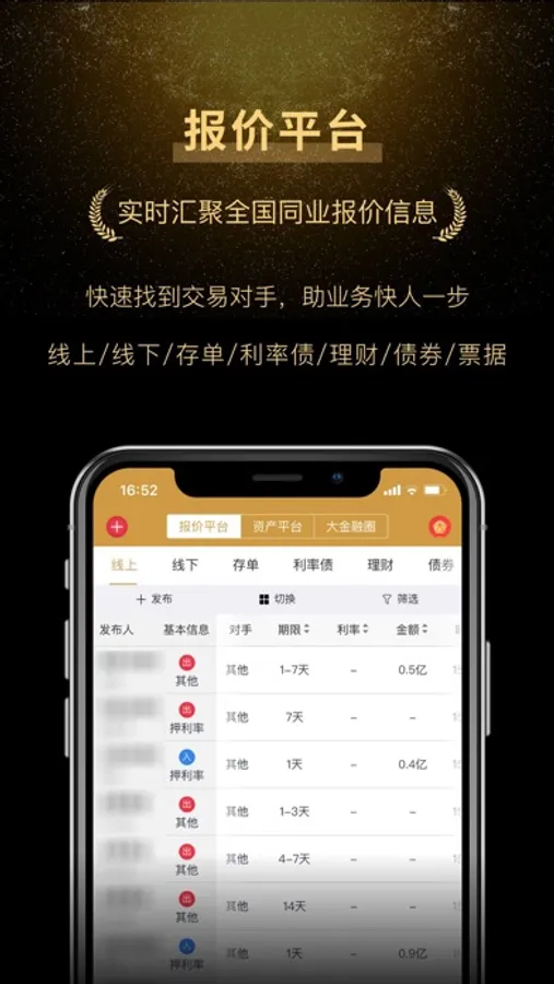 金卓讯App以互联网和云服务打造的金融软件终端为核心,线下以专业的服务团队为主体,提供“金融同业服务、智库研究服务、金融资讯服务、固收大数据服务”四大核心业务,为金融机构在债券、同业、信托及基金等固收产品交易中解决信息不对称、不及时,交易效率低,门槛和成本高以及信用风险等问题,同时还提供固收领域的金融培训与高端人才服务。为国内大固收市场的发展尽一份薄力!