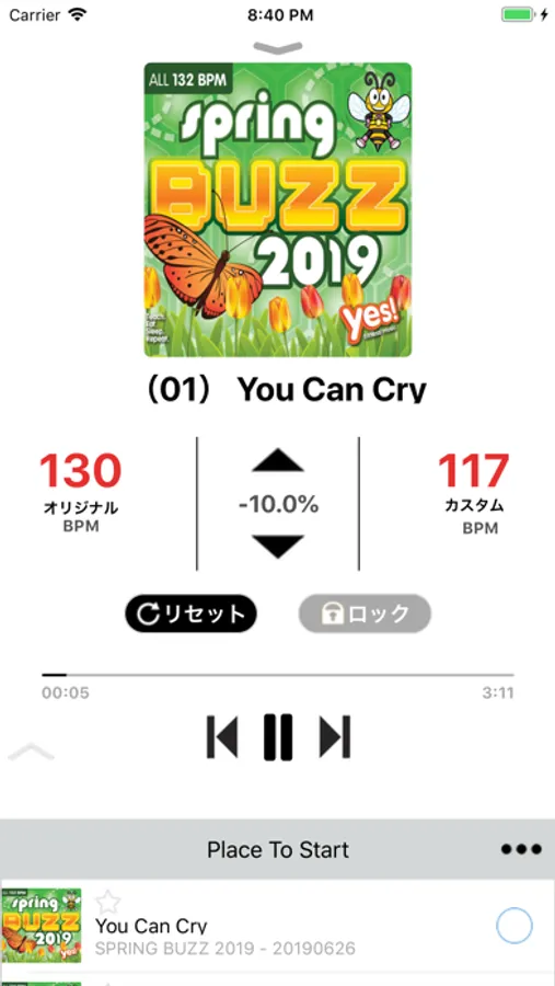 ●BPM調整ボタンで曲別にもアルバム全体でも再生テンポをセットできます。