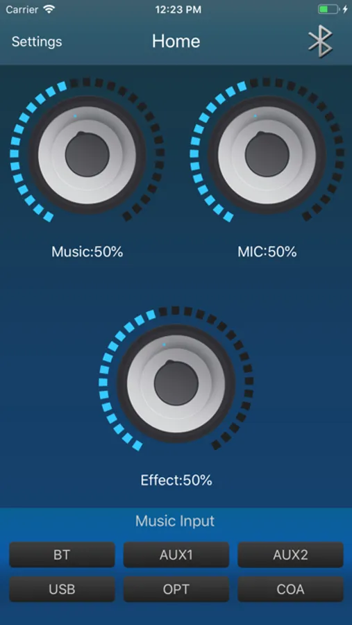 A convenient professional KTV tuning App, Bluetooth supports dual-mode tuning, supports six EQ sound effects, supports non-destructive playback, supports Bluetooth, AUX, OPT, COAX and USB audio input.