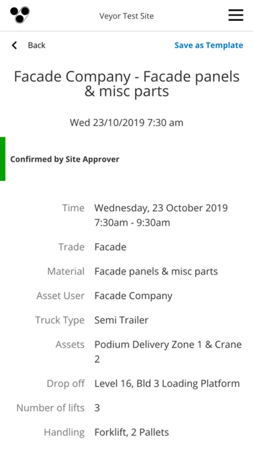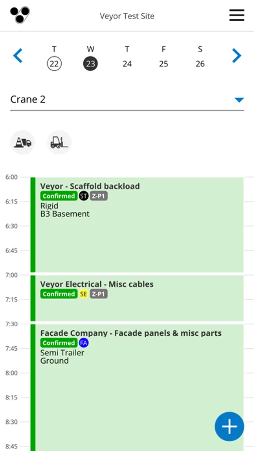 - Request bookings for assets such as cranes, loading zones, hoists, forklifts and so on.