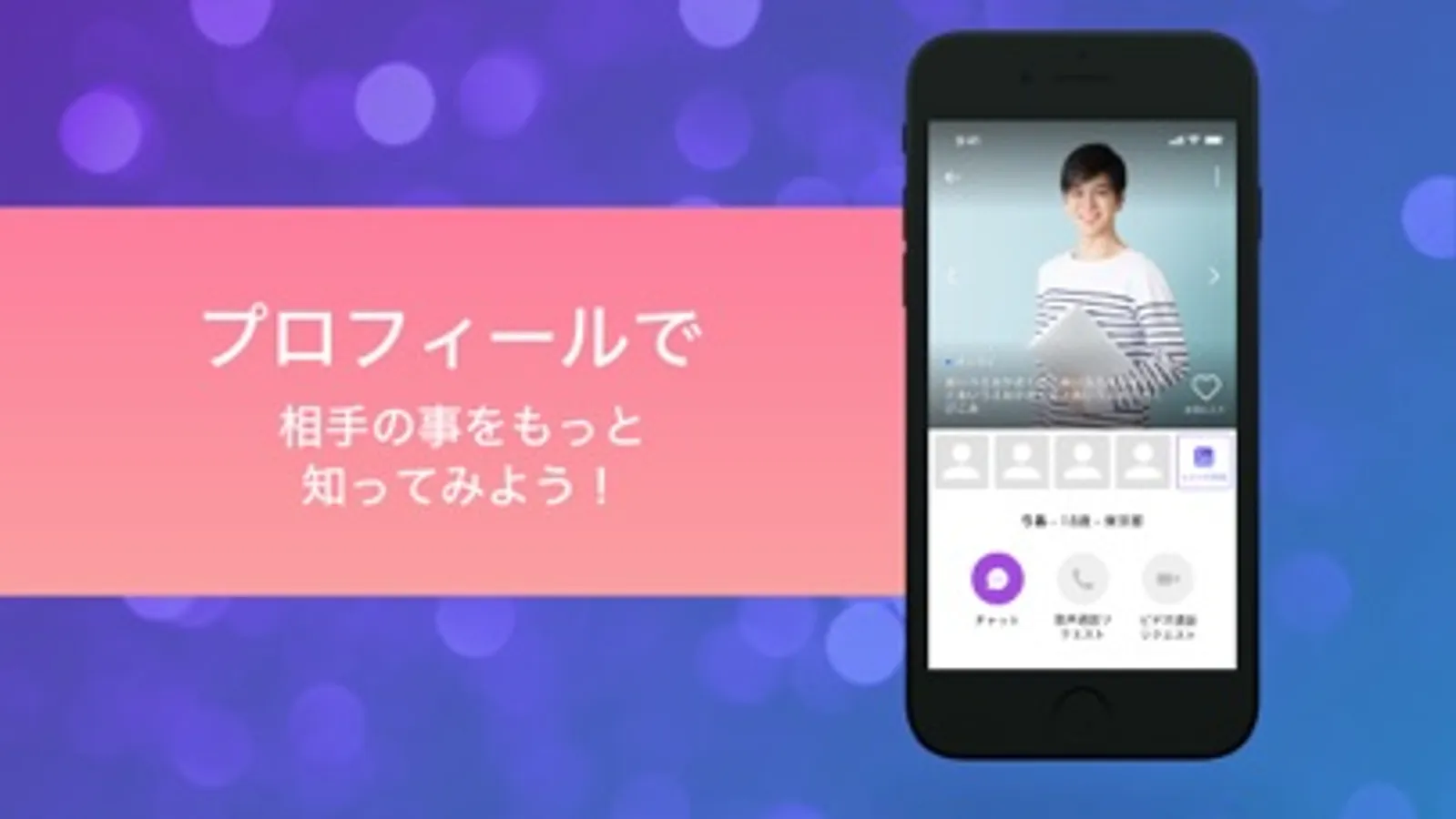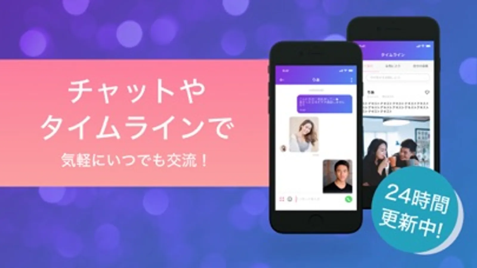 チャットや電話機能、タイムライン形式の掲示板機能があり、様々な方法で登録会員同士で会話を楽しめます。