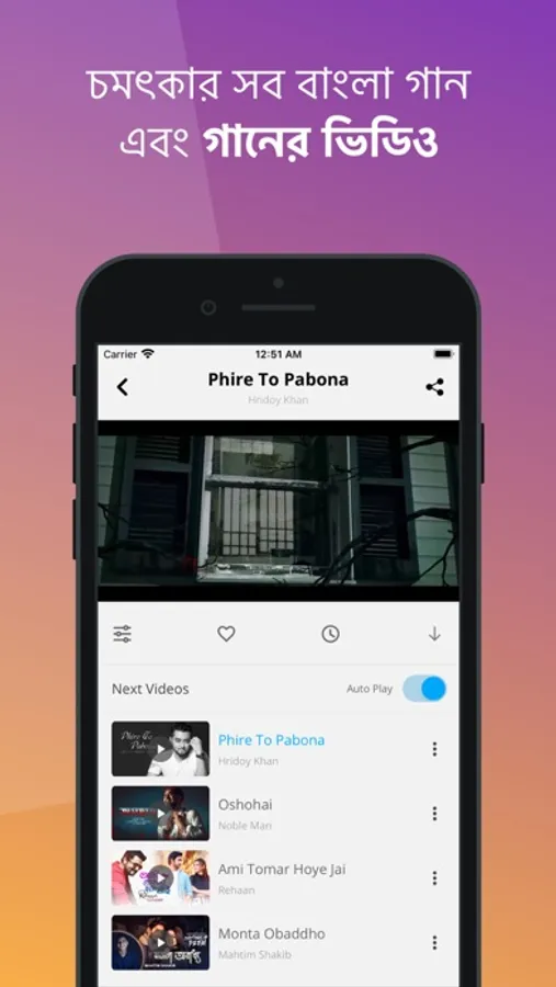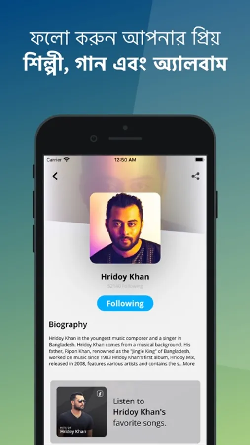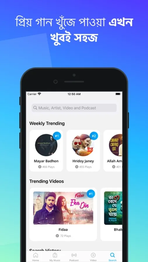 • Users can find different kind of Bangla songs based on their taste of music like pop, rock, folk, contemporary, new releases, party mix and different types of local playlists, album of week and many more.