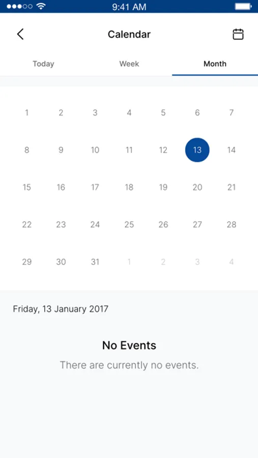 Calendar: The Calendar provides carers a personalised view of what's coming up for the day or in the future.