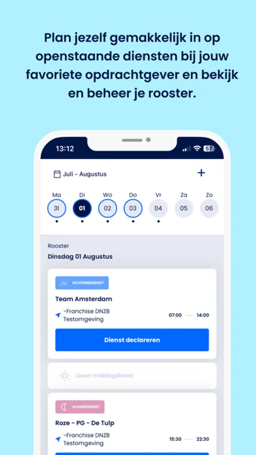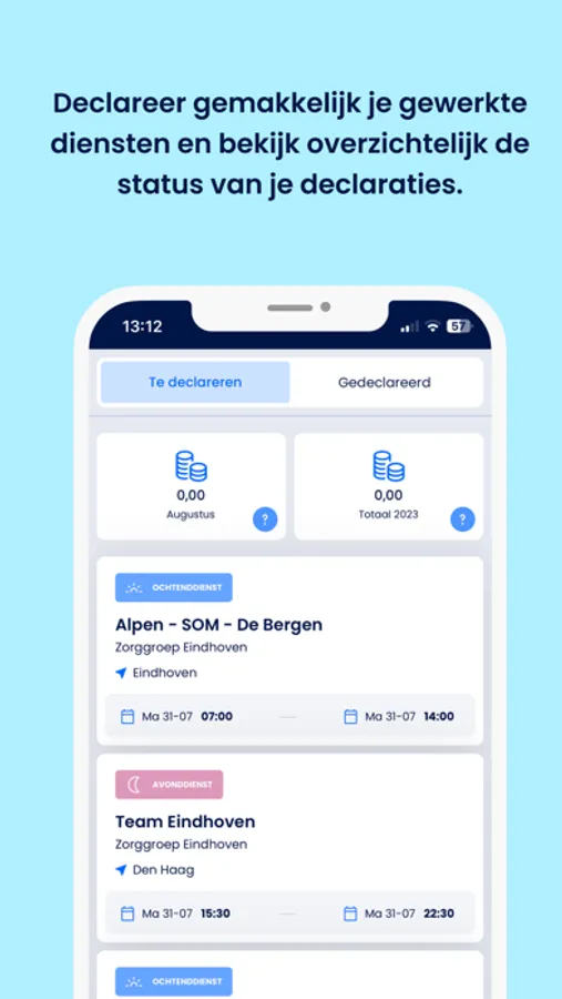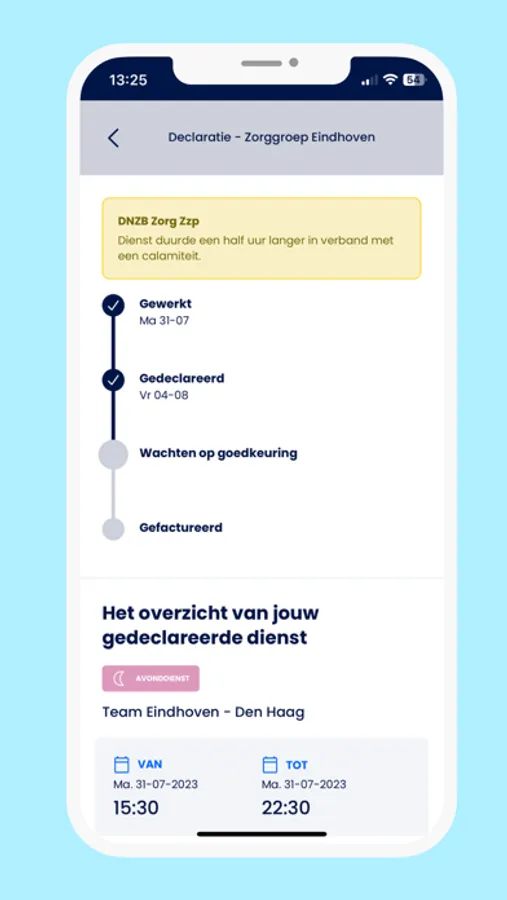 Na afloop van elke gewerkte dienst herinneren wij je eraan om vliegensvlug in drie eenvoudige stappen je dienst te declareren.