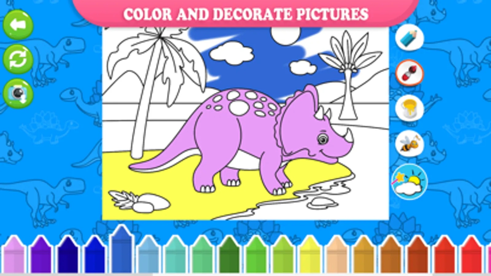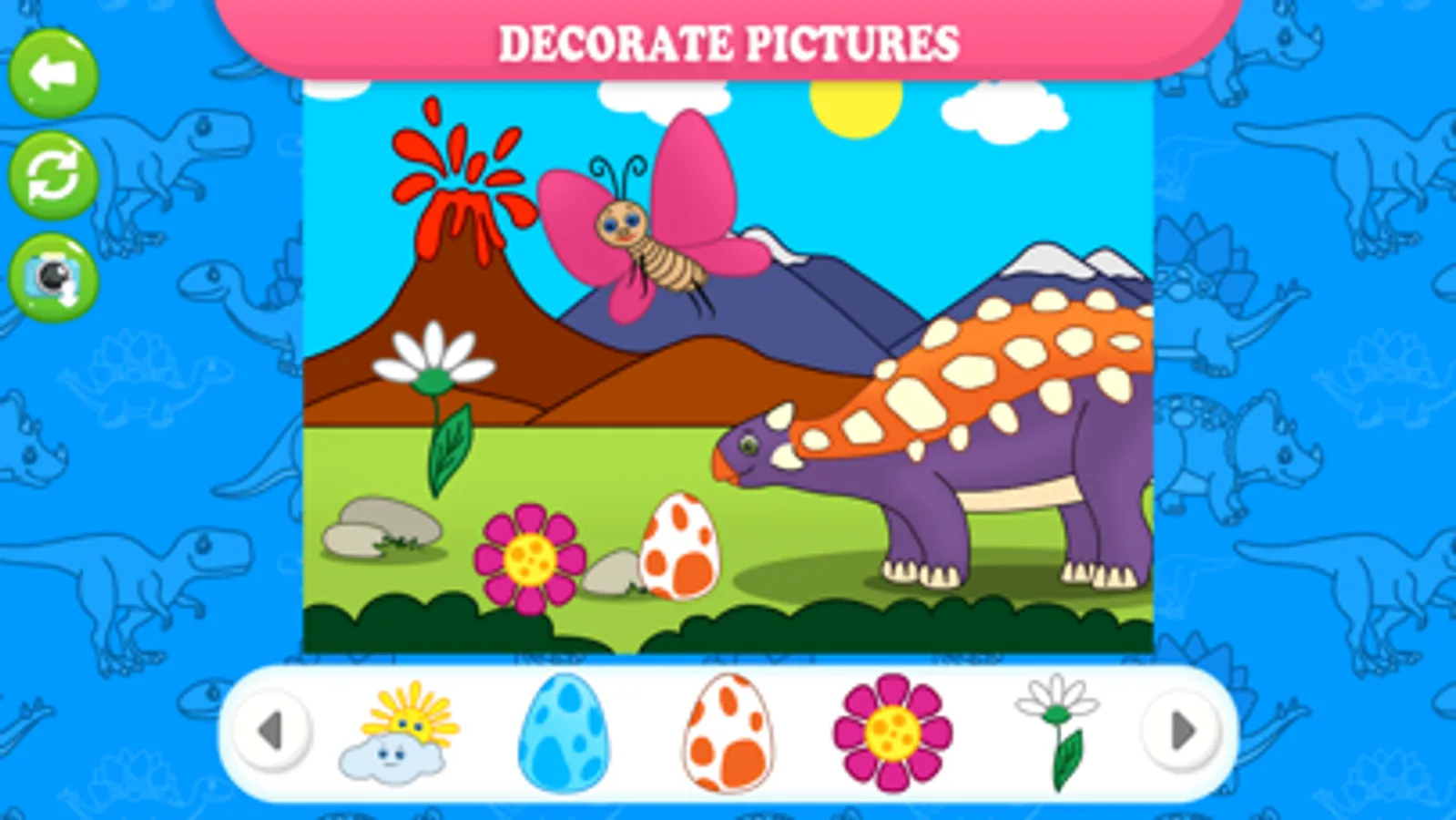 Coloring and Decorating - Draw with your fingers, decorate colorful backgrounds with beautiful stickers, and decorate coloring pages with dinosaurs. And when your masterpiece is ready, you can save it in the gallery and share it with your friends and family.