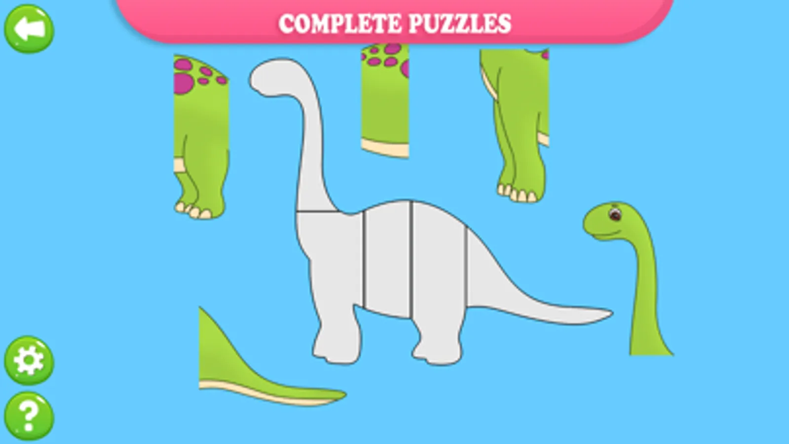 Puzzle – Match shapes and drag the pieces to the right place to make a whole dinosaur out of them.