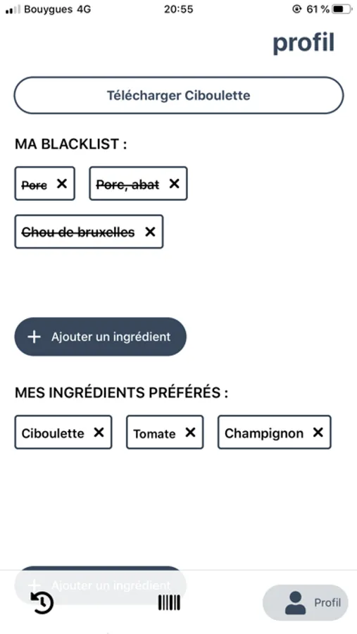 CIBOUSCAN is still not installed on your phone? QUICKLY QUICKLY ! CIBOUSCAN is the companion of Ciboulette and is there to help you do your shopping! Your personalized assistant offers you recipes that match you and think about the planet, but he is also there to warn you about the composition of the products (Nutriscore, Nova, additives)